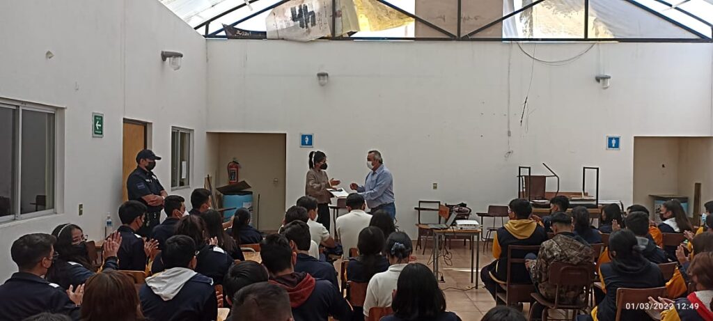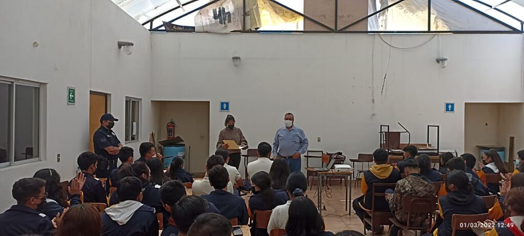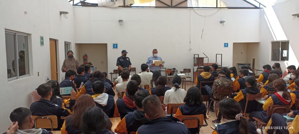 Los oficiales y colaboradores en Prevención del Delito interactuaron con alumnos de la Preparatoria Candelaria Sánchez Saldaña de la colonia Libertad, para tratar asuntos relacionados en el uso correcto de las redes sociales y prevenir acciones que atente contra los jóvenes.