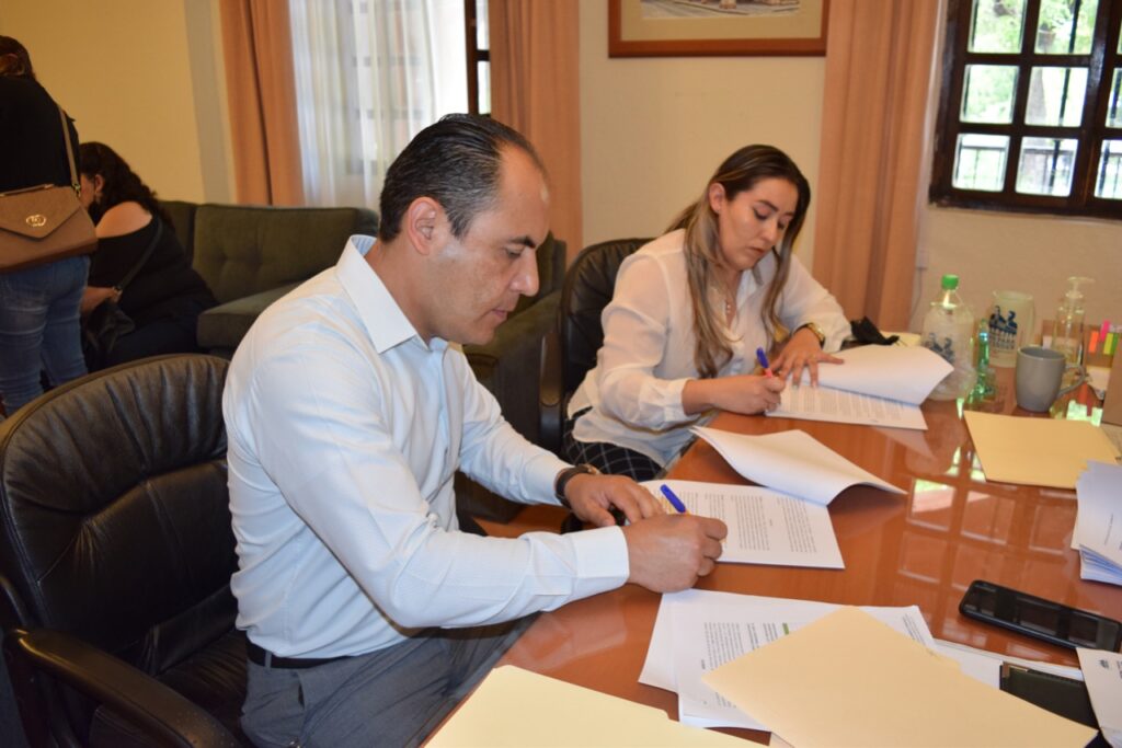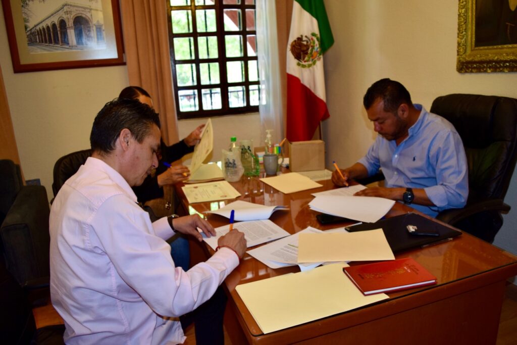 En acto encabezado por el Presidente Municipal Ing. Iván Estrada Guzmán, el Oficial Mayor Lic. Efrén Herrera González, el Secretario del Ayuntamiento Lic. Raúl Ortega Rodriguez, el Sindico Municipal Lic. Cristobal de Jesús Ramírez y el Tesorero Municipal C.P. Diego Alejandro Mendoza Pínales por parte de la administración municipal y la Lic. María Magdalena Orozco Carrizales como representante del Sindicato de Trabajadores.