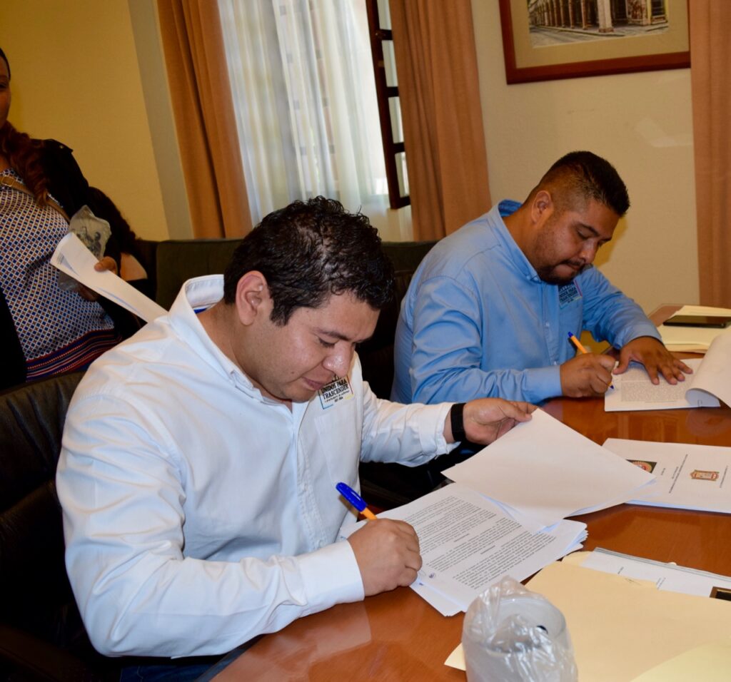 En seguimiento a las reuniones sostenidas con anterioridad entre la dirigencia del Sindicato de Trabajadores del Ayuntamiento de Matehuala y el Gobierno Municipal a través de la Ofícialia Mayor bajo la titularidad del Lic. Efrén Herrera González, este día se reunieron ambas partes con la finalidad de de signar el contrato de trabajo colectivo.