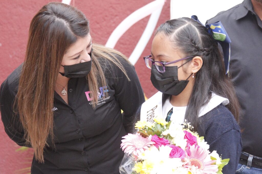 Luego del acto protocolario la Presidenta del Sistema Municipal DIF Paula Méndez García, dialogo con la pequeña Lucero, quien le platico de sus sueños y algunas de las actividades que a diario realiza en su hogar y escuela.