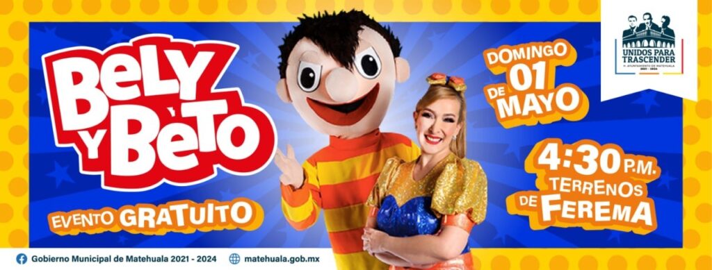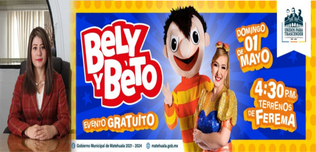 Será este domingo primero de mayo cuando lleguen a Matehuala para festejar a las niñas y los niños en su día el Show de Bely y Beto, la cita es a partir de las 4:30 de la tarde en las instalaciones de FEREMA y la entrada es totalmente gratis.