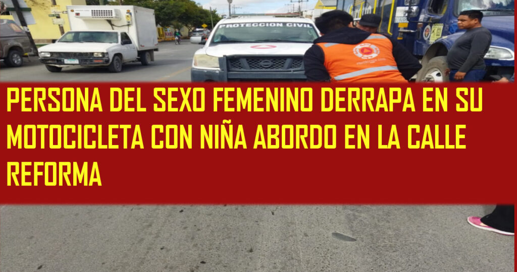PERSONA DEL SEXO FEMENINO CON UNA NIÑA DERRAPARON EN LA CALLE REFORMA ESQ. NEGRETE . PROTECCIÓN CIVIL LLEGO AL LUGAR DE LOS HECHOS Y PARA REVISAR A LAS AFECTADAS AMERITANDO SER TRASLADADAS A CLÍNICA 14 PARA SU VALORACIÓN , TRÁNSITO TOMO CONOCIMIENTO DE LOS HECHOS.