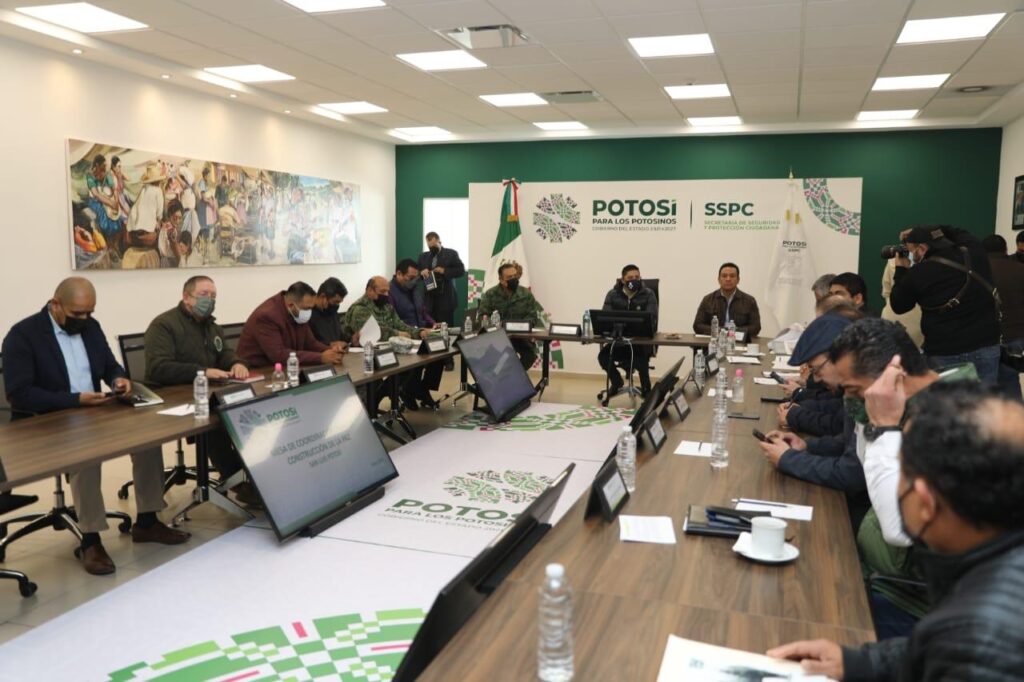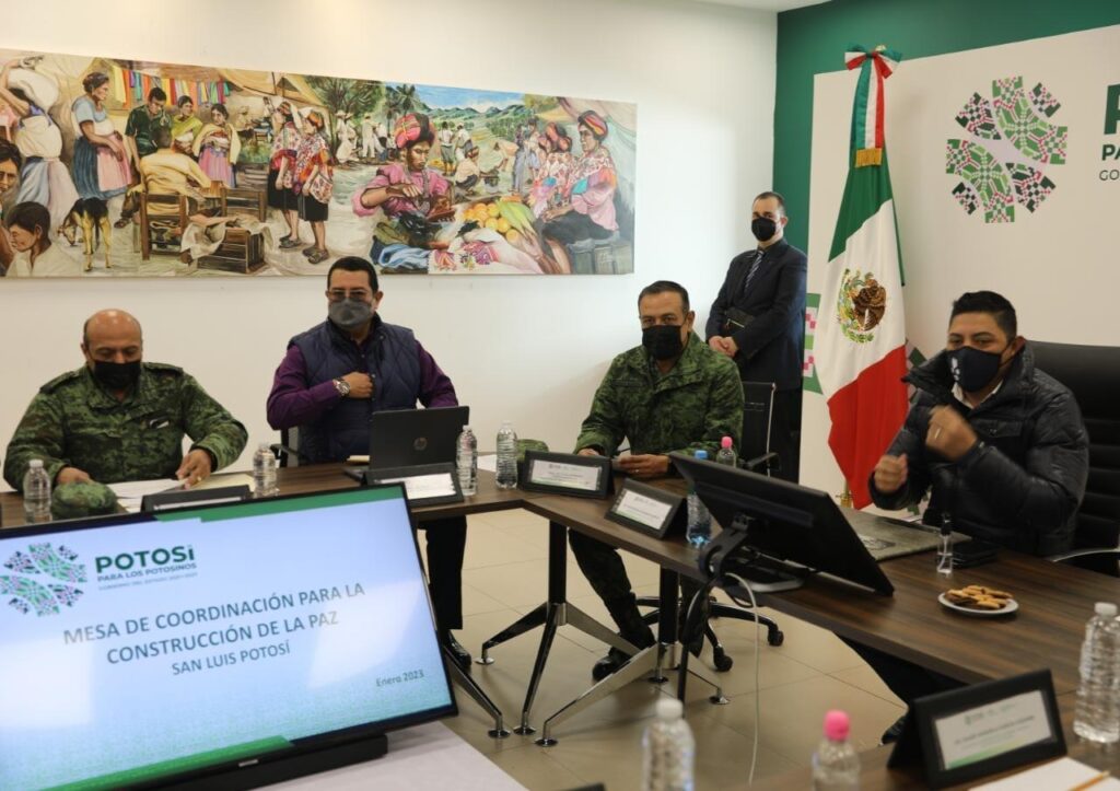 El Gobernador de San Luis Potosí, Ricardo Gallardo Cardona, y el titular de la Secretaría de Seguridad y Protección Ciudadana Estatal (SSPCE), Guzmar Ángel González Castillo, encabezaron este miércoles los trabajos de la Mesa de Coordinación para la Construcción de la Paz Social en donde se dieron a conocer las nuevas estrategias y mecanismos de seguridad a emprender para seguir impulsando un modelo de prevención y combate de los delitos en los 58 ayuntamientos de la entidad.