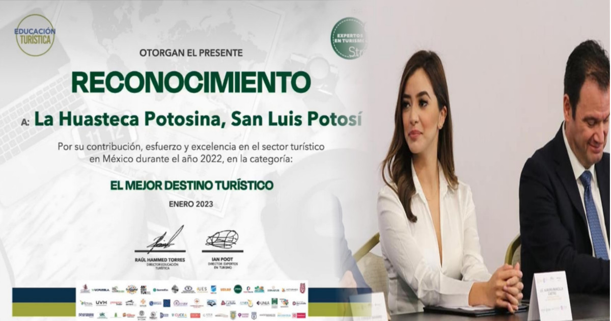 Resultado del esfuerzo, trabajo y dedicación del Gobierno del cambio que encabeza Ricardo Gallardo Cardona en materia turística, la agrupación denominada “Expertos en Turismo” del Estado de Jalisco, reconoció a la Huasteca potosina como el “Mejor Destino Turístico de México”, derivado de una convocatoria llevada a cabo a nivel nacional, donde la gente daba su opinión sobre lo vivido en su reciente periodo vacacional.