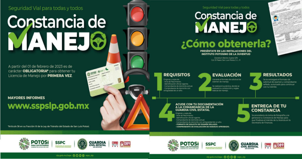 Para incentivar en las y los conductores potosinos el reforzamiento de una cultura y educación en seguridad vial, el Gobernador de San Luis Potosí, Ricardo Gallardo Cardona, exhortó a cumplir y obtener la constancia de manejo, como requisito indispensable en el trámite de licencias de conducir por primera vez, coadyuvando a que cuenten con las habilidades necesarias frente al volante, cuidar su vida e integridad de todas y todos.