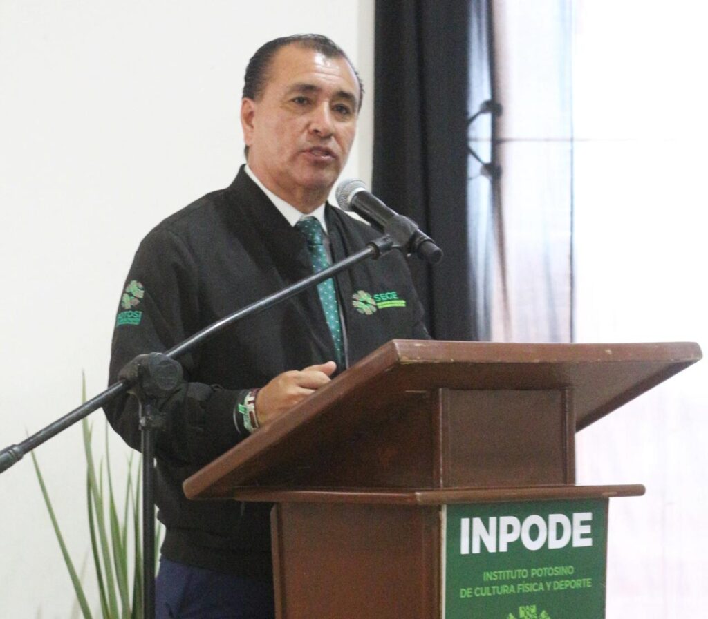 El titular de la Secretaría de Educación del Gobierno del Estado (SEGE), Juan Carlos Torres Cedillo, encabezó la ceremonia en el pabellón de la Unidad Deportiva “Adolfo López Mateos”, acompañado por la titular del Instituto Potosino de Cultura Física y Deporte (Inpode), Karla Hernández Sánchez, el director de Desarrollo del Deporte, Aníbal Ibarra Loredo y el paratleta medallista Patricio Quiñones Cabrieles.