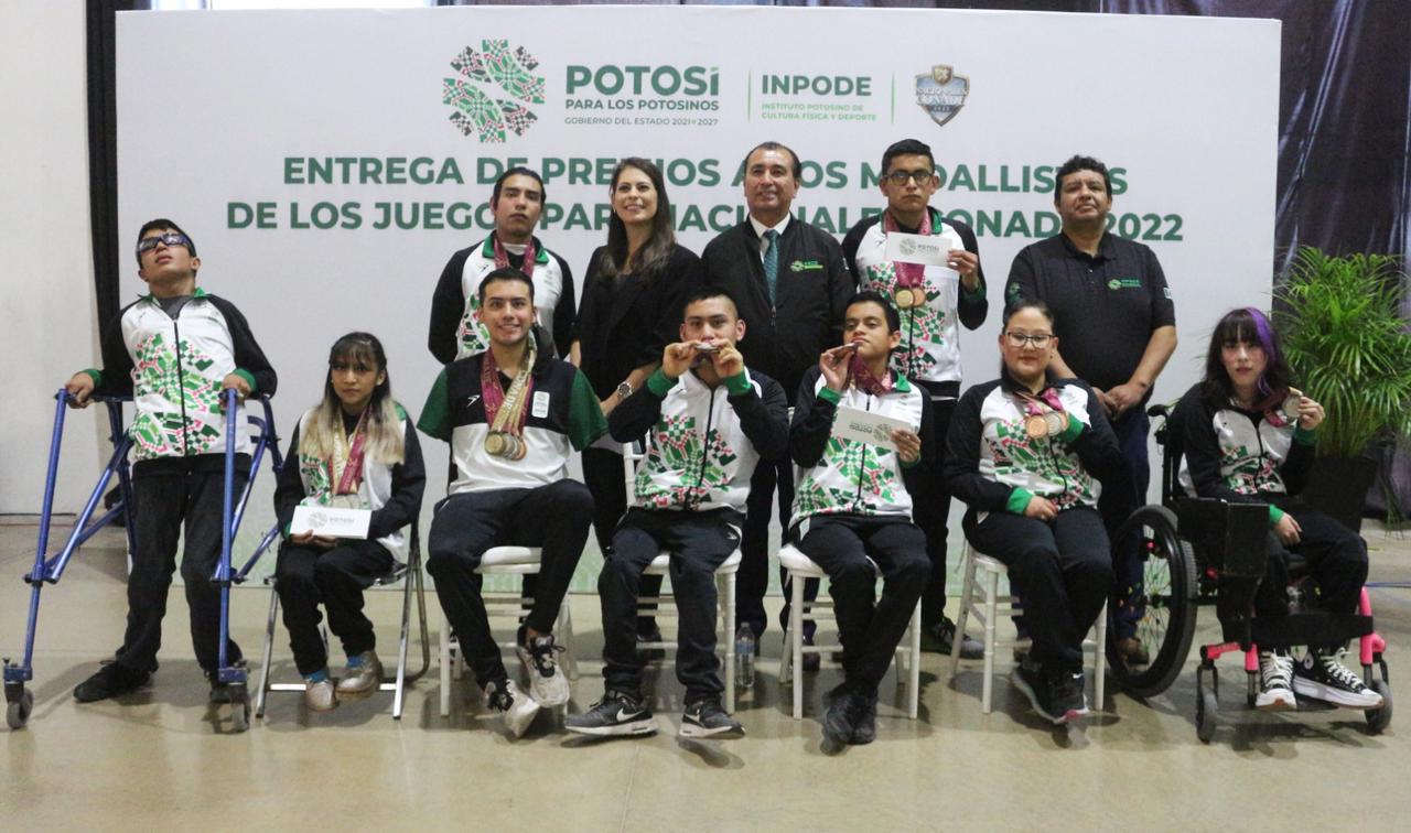 Gracias al impulso que el Gobierno del cambio liderado por Ricardo Gallardo Cardona, está dando al deporte y con la visión de ayudar a las y los deportistas de todas las disciplinas, proporcionándoles todos los medios para que realicen sus actividades y que sus logros sean reconocidos, se celebró la entrega de premios a las y los medallistas de los Juegos Paranacionales Conade 2022, celebrados en Sonora, en donde se entregaron incentivos por 20 mil pesos por cada medalla de oro, 10 mil por cada de plata y cinco mil por medalla de bronce.