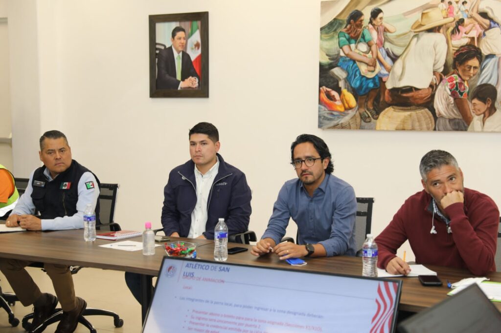 En una reunión con representantes de cada una de las corporaciones antes mencionadas y con directivos del club de fútbol potosino, se detalló que el Operativo “Estadio Seguro” iniciará a las 18:00 horas con un despliegue de elementos debidamente distribuidos, sumando acciones con las tareas de videovigilancia del Centro de Coordinación, Control, Comando, Comunicación, Cómputo, Información e Inteligencia (C5); rondines, vigilancia estacionaria y sobrevuelo de drones, garantizando que no haya alteraciones a la tranquilidad pública o altercados, debido a que se trata de un encuentro con importante cantidad de afición.