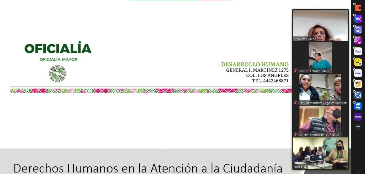 Con el objetivo de que, al brindar cualquier servicio, se garantice la dignidad de todas las personas y sus derechos humanos, como se ha promovido desde el Gobierno del cambio, que encabeza Ricardo Gallardo Cardona, la Oficialía Mayor del Poder Ejecutivo llevó a cabo el curso de capacitación “Derechos Humanos en la atención ciudadana” para las y los servidores públicos de la Secretaría del Trabajo y Previsión Social (STPS).