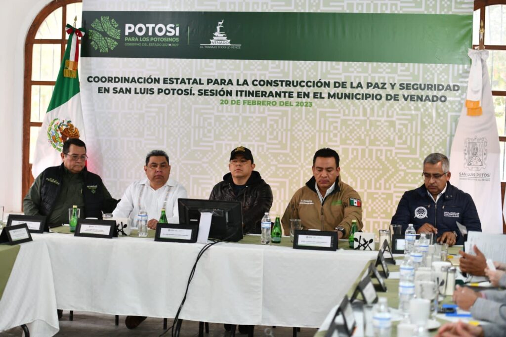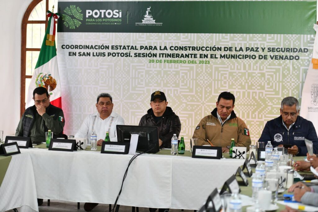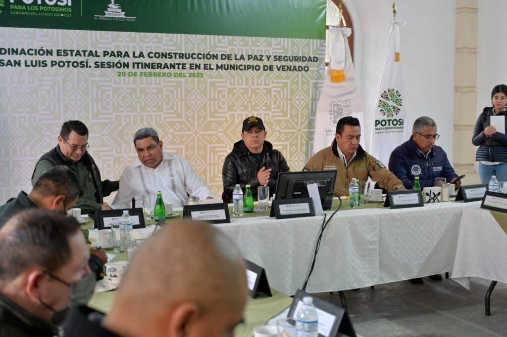 Venado, San Luis Potosí.- Con un mensaje de apoyo, acompañamiento y colaboración estratégica en continuidad de las acciones para fortalecer los resultados en seguridad pública en la región Altiplano, el Gobernador de San Luis Potosí, Ricardo Gallardo Cardona, visitó el municipio de Venado, este lunes, para dirigir y restablecer los esfuerzos de las corporaciones de seguridad y procuración de justicia en el marco de la Mesa de Coordinación para la Construcción de la Paz.