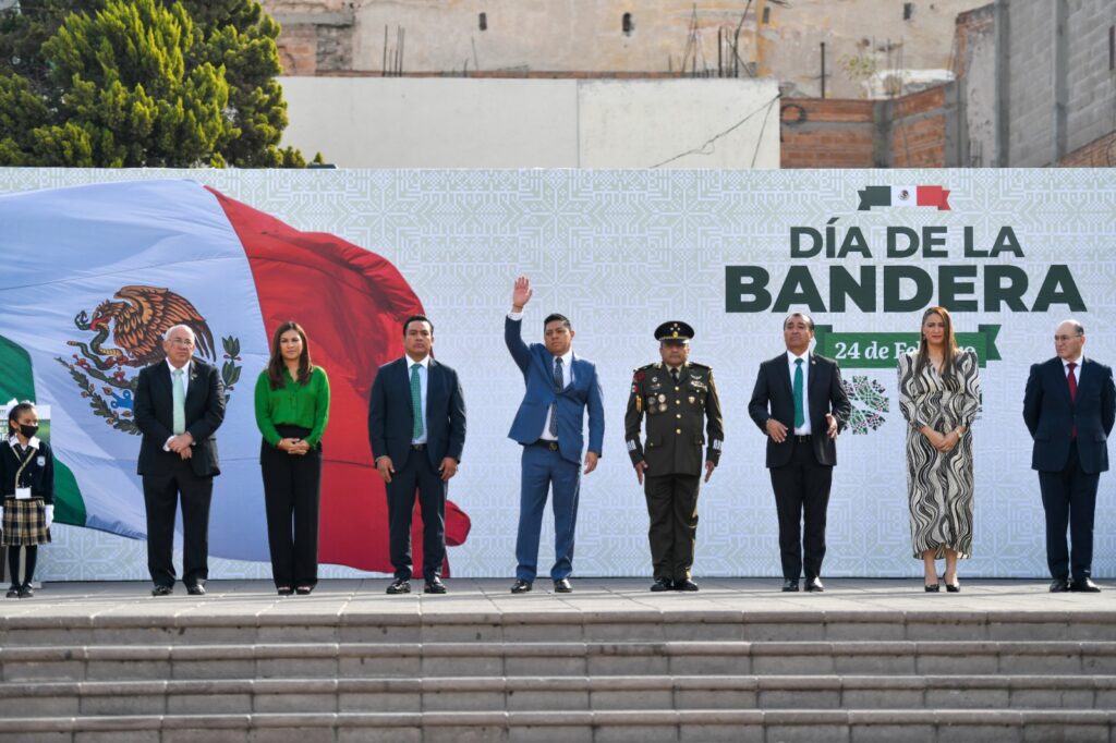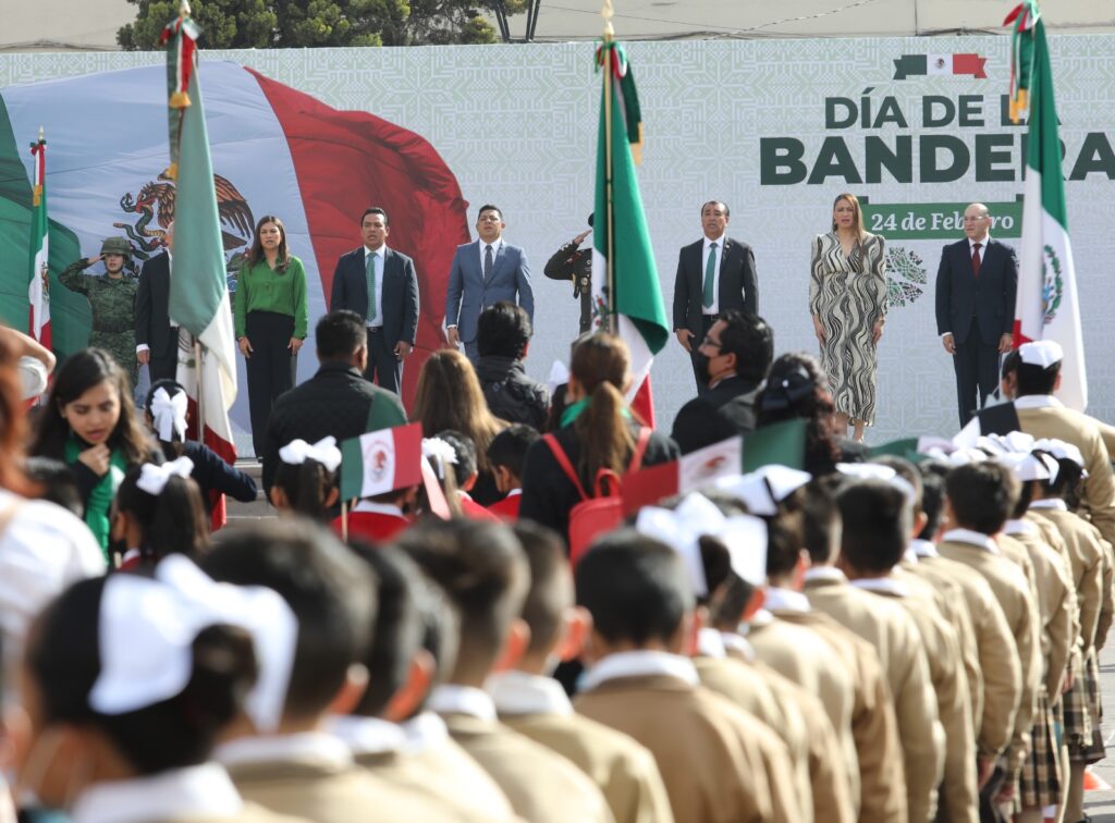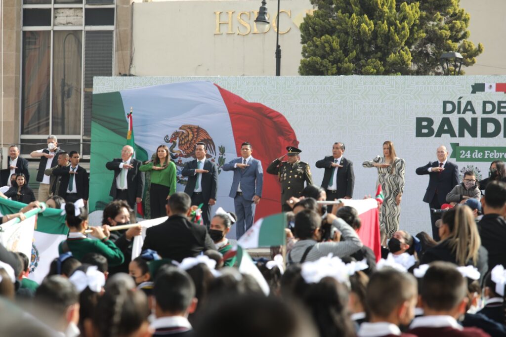 Este viernes 24 de febrero “Día de la Bandera” en emotiva ceremonia de Juramento a la Bandera de alumnas y alumnos de tercer año de primaria de escuelas pertenecientes a la SEGE, encabezado por el Mandatario Estatal se realizó el abanderamiento a escuelas de la capital del Estado, donde enfatizó la importancia de “hacer una pausa en la vida diaria para que, en estas fechas cívicas se retome el patriotismo mexicano”.