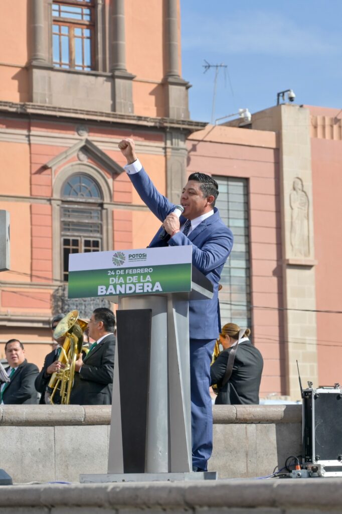 En el marco de la conmemoración del 24 de febrero “Día de la Bandera”, el Gobernador de San Luis Potosí, Ricardo Gallardo Cardona, anunció que para refrendar el compromiso de fortalecer los valores cívicos como el respeto, aprecio y amor a los símbolos patrios, a través de la Secretaría de Educación de Gobierno del Estado (SEGE) se entregarán seis mil kits de banderas para escolta a escuelas públicas de nivel primaria y secundaria, de los 58 municipios de toda la entidad.