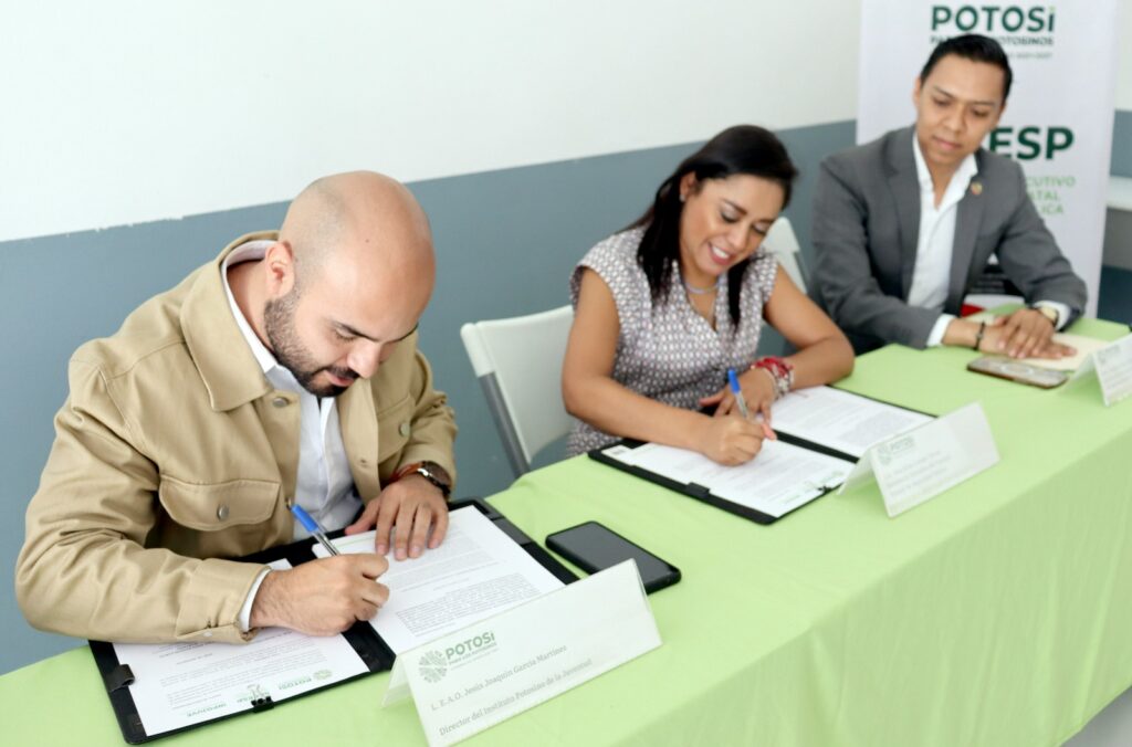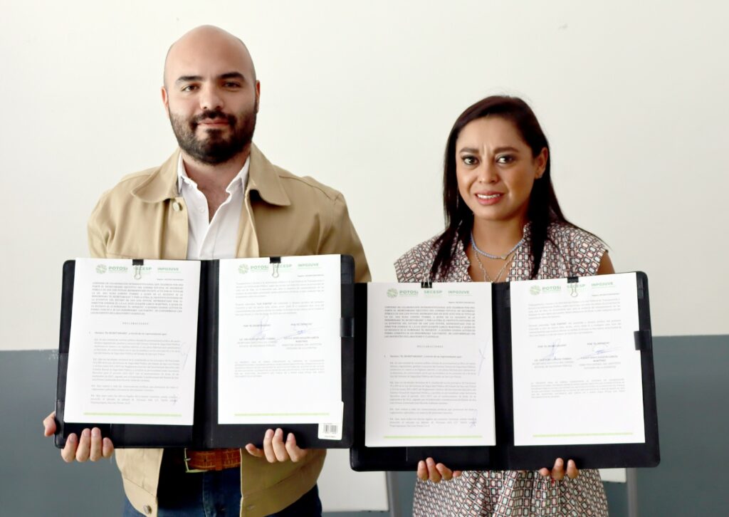 En cumplimiento al compromiso del Gobernador de San Luis Potosí, Ricardo Gallardo Cardona, de sumar esfuerzos interinstitucionales a favor de las y los potosinos, el Secretariado Ejecutivo del Consejo Estatal de Seguridad Pública (SECESP) y el Instituto Potosino de la Juventud (Inpojuve) firmaron un convenio de colaboración que se traducirá en beneficios para la juventud en las cuatro regiones del Estado y para las integrantes de las Redes de Mujeres Constructoras de Paz (Mucpaz).