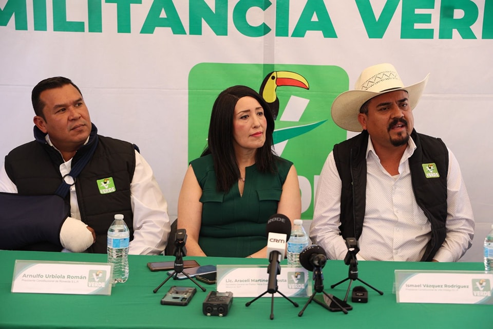 A partir de los excelentes resultados de los gobiernos del PVEM, 13 alcaldes se han adherido a la mejor opción política en San Luis Potosí: Martínez Acosta_Con la incorporación de Arnulfo Urbiola Román de Rioverde e Ismael Vázquez Rodríguez de Villa Hidalgo, el Partido Verde Ecologista de México (PVEM), cuenta ya con 29 presidentes municipales que forman parte de los gobiernos verdes que siguen la línea de trabajo y desarrollo implantada por el Gobernador del Estado José Ricardo Gallardo Cardona, afirmó la Secretaria General del Comité Ejecutivo Estatal (CEE), Araceli Martínez Acosta.En rueda de prensa, el CEE formalizó la incorporación de ambos presidentes municipales, cada uno, siguiendo en sus demarcaciones la línea trazada por el Gobierno del Estado. Al respecto, Martínez Acosta informó que ya son 13 los alcaldes que se han adherido al PVEM y existen otras y otros con la intención de sumarse a este proyecto ganador.“La decisión se toma en beneficio de mi pueblo, para ayudarlo, la opción del Verde es la mejor para Rioverde, me acompañan regidores, ellos tomarán la decisión de afiliarse al partido porque somos un solo equipo que se llama Rioverde, y es de todos”, expresó Urbiola Román, quien a pregunta expresa descartó pronunciarse por ahora sobre una posible reelección.Por su parte, Vázquez Rodríguez explicó que él nunca formó parte del partido político con el que triunfó en las pasadas elecciones: “en lo personal lo hice por una formalidad porque nunca fui militante, el movimiento que nos llevó a la presidencia fue más social que político y nosotros nos sentimos más identificados con el proyecto del Partido Verde”.Por último, Martínez Acosta refrendó la política de puertas abiertas del PVEM para que puedan sumarse todas aquellas y aquellos que tengan la voluntad de trabajar en equipo en beneficio de la ciudadanía de las cuatro regiones de San Luis Potosí.