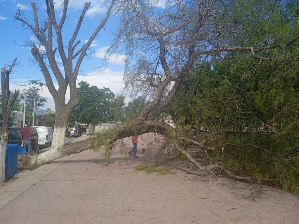 La tarde de este miércoles se presentaron fuertes ráfagas de viento que provocaron la caída de árboles de grandes dimensiones en diversos puntos de la ciudad, los cuales por fortuna no causaron daño a personas o patrimonio personal de las familias de la zona.