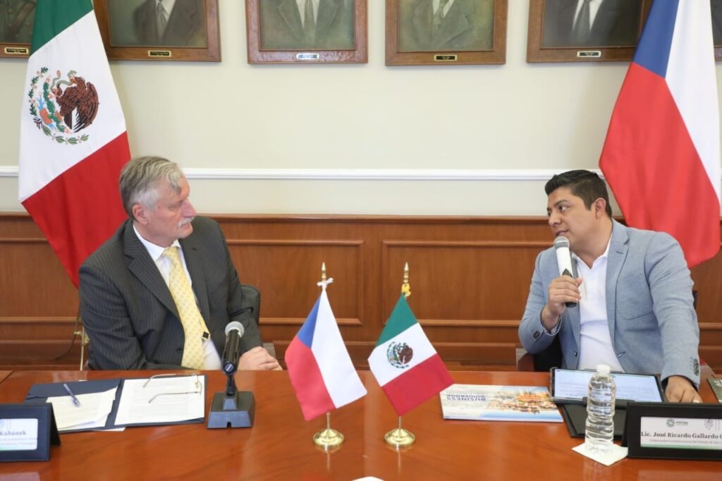 Para potenciar los proyectos e intercambios de carácter económico, deportivo, educativo y cultural, y afianzar la estrategia de inversión y crecimiento integral del Estado, el Gobernador de San Luis Potosí Ricardo Gallardo Cardona, sostuvo una reunión con Zdenêk Kubánek Embajador Extraordinario y Plenipotenciario de la República Checa en México, Belice, El Salvador, Guatemala Honduras y Nicaragua.