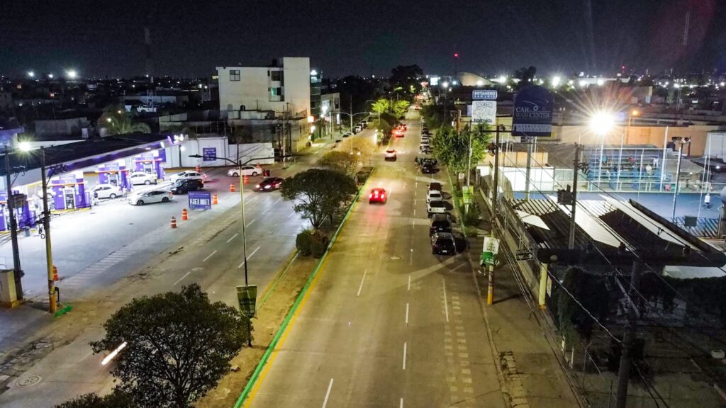Para la transformación de la avenida Himno Nacional, desde prolongación Pedro Vallejo hasta la Glorieta Francisco González Bocanegra, el Gobierno del cambio rehabilitó cerca de 70 mil metros cuadrados de concreto hidráulico, e hizo el cambio en mil 800 metros lineales de tubería de polietileno de alta densidad, aplicando señalamiento, pintura, vialetas inteligentes y la rehabilitación del alumbrado para que la avenida se convierta en una vía iluminada y segura.