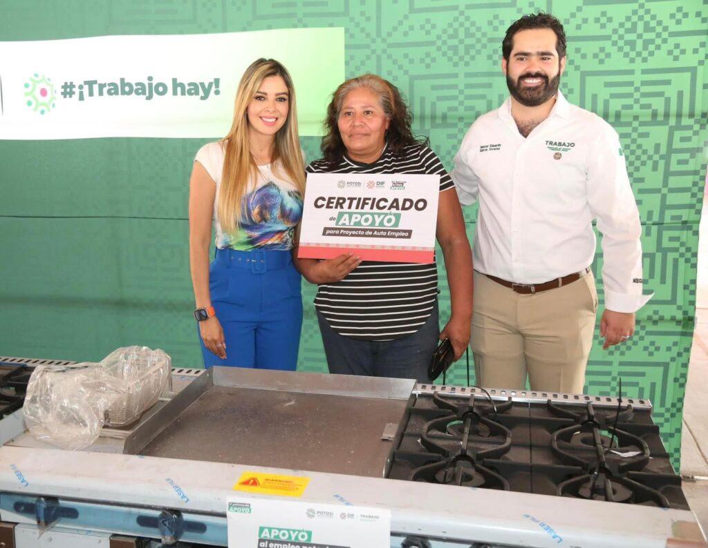 El Sistema Estatal para el Desarrollo Integral de la Familia (DIF) y la Secretaría del Trabajo y Previsión Social (STPS), entregaron herramientas, maquinaria y equipo especializado para emprender negocios, como parte del programa de Fomento al Autoempleo que este año brindará apoyo a 130 potosinas y potosinos que desean emprender para generar mayor bienestar.