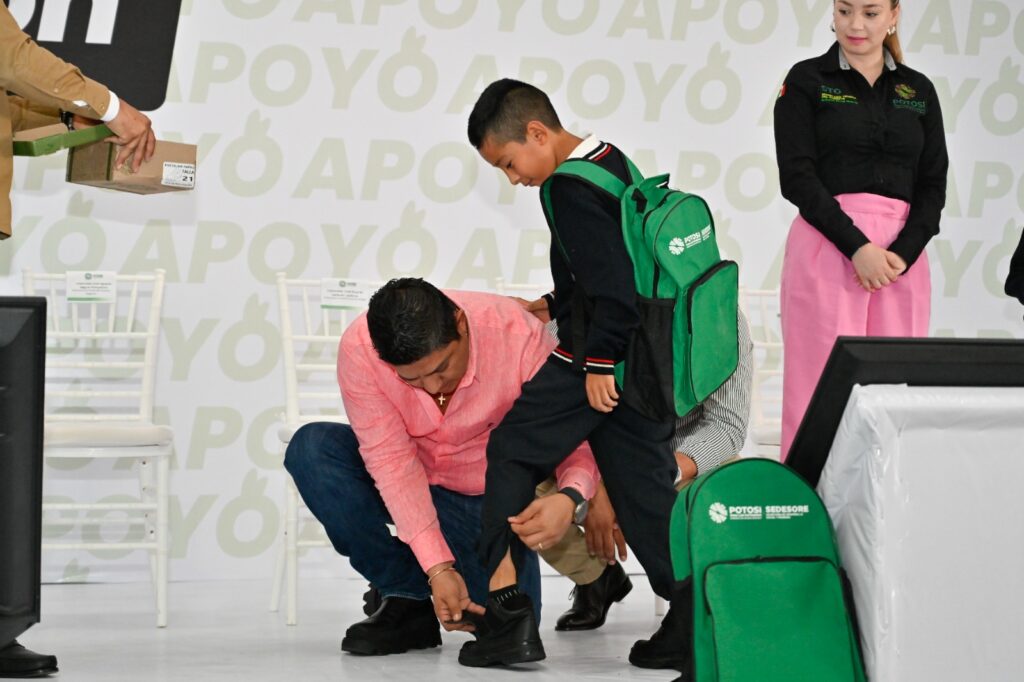 Quienes también se mostraron muy contentos y agradecidos fueron las y los niños estudiantes, fue el caso de Fernanda Montserrat Vega Meave, alumna de la Escuela Filomeno Mata Rodríguez, quien dijo estar muy contenta por este apoyo que Ricardo Gallardo, «la mochila y los zapatos que nos dio el Gobernador me servirán mucho para poder hacer mis tareas y aprender mucho».