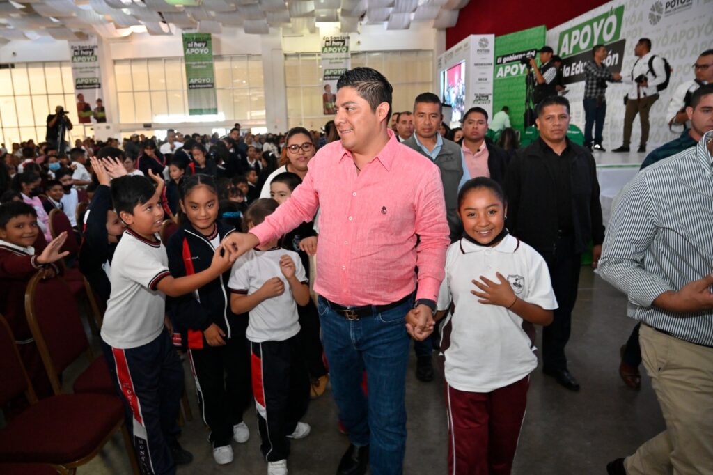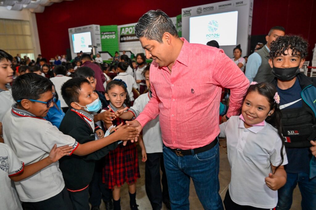 Con el arranque del Programa Entregada de Apoyos Escolares, el Gobernador Ricardo Gallardo Cardona brinda un gran apoyo a la economía de las familias, porque ahora con el regreso a clases nuestros hijos acudirán con útiles, mochila y zapatos nuevos, lo que los motiva a ir gustosos a la escuela, afirmaron madres de familia.