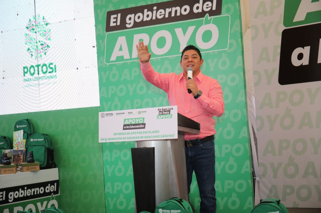 Gallardo Cardona reafirmó el compromiso del Gobierno del apoyo con el progreso y el desarrollo de los programas sociales en los 58 municipios del Estado. Mencionó que a diferencia de la herencia maldita, que dejó a los municipios con deudas y rezagos, «hoy el dinero se le reparte a la gente, con más obras y más programas sociales, porque se gobierna con el pueblo potosino».