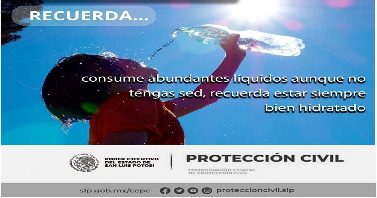 El Gobierno del Estado de San Luis Potosí, a través de la Coordinación Estatal de Protección Civil (CEPC), se mantiene en vigilancia permanente para atender cualquier reporte ciudadano, además de reforzar las acciones preventivas con recomendaciones a las y los potosinos por la temporada de calor.