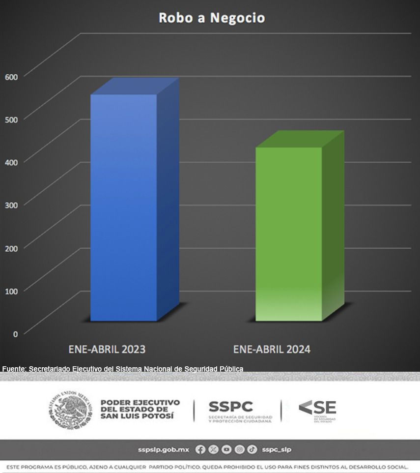 La dependencia reveló que la incidencia en feminicidio descendió en un 71 por ciento, y homicidio doloso se redujo de 153 casos a 116, registrando 24 por ciento menos, por lo que estas cifras presentadas por el Sistema Nacional de Seguridad Pública posicionan a la entidad potosina como ejemplo a nivel nacional en cuanto a la disminución delictiva.