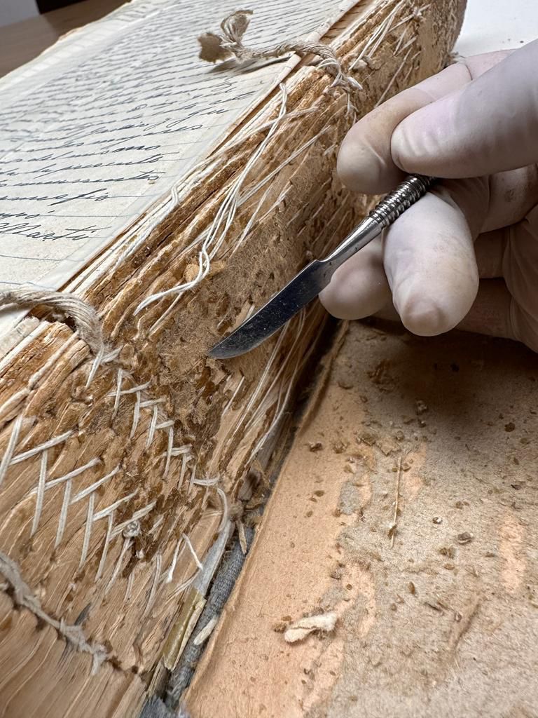 En la labor de cuidado del acervo histórico que resguarda la institución, se ubican documentos, actas, libros, imágenes y mapas que son conservados con limpieza y desinfección, restauración de material deteriorado y encuadernación para asegurar su estabilidad. Además, se fabrican materiales de almacenaje especializados con las condiciones ambientales para prevenir daños.