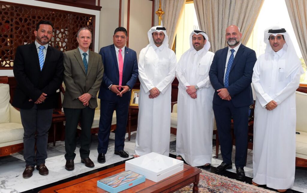 Durante la primera reunión en Qatar, el Gobernador Gallardo Cardona estuvo acompañado por el embajador de México en Qatar, José Guillermo Ordorica Robles, y el secretario de Desarrollo Económico, Jesús Salvador González Martínez.