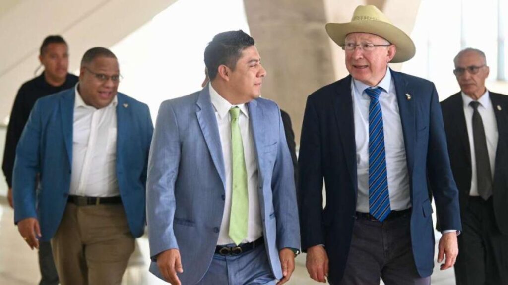 En su más reciente visita a la Entidad, el Embajador de Estados Unidos en México, Kenneth Lee Salazar, reconoció la labor que la administración del Gobernador Ricardo Gallardo Cardona ha realizado en materia laboral y el cumplimiento de los acuerdos previstos dentro del Tratado entre los Estados Unidos, México y Canadá (T-MEC).
