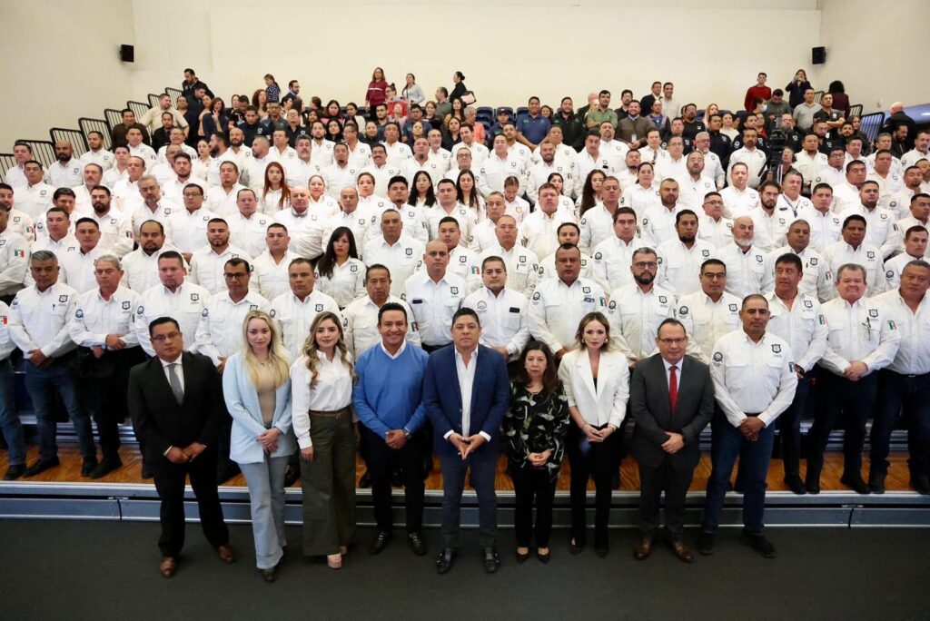 Gallardo Cardona también felicitó a la corporación por el empeño para que San Luis Potosí continúe en el trayecto de la baja delictiva, mes con mes y expresó su reconocimiento a todas y todos por su desempeño, así como a sus familias por ser su motor y a la fiscal general “que ha sabido ponerse a la altura de esta corporación”.
