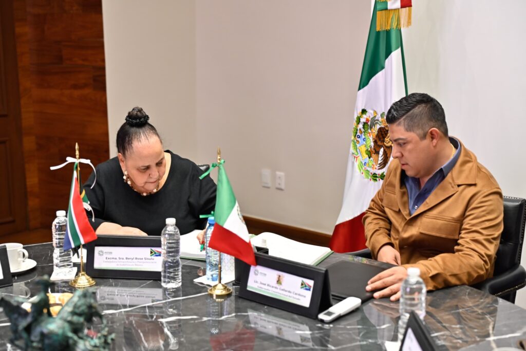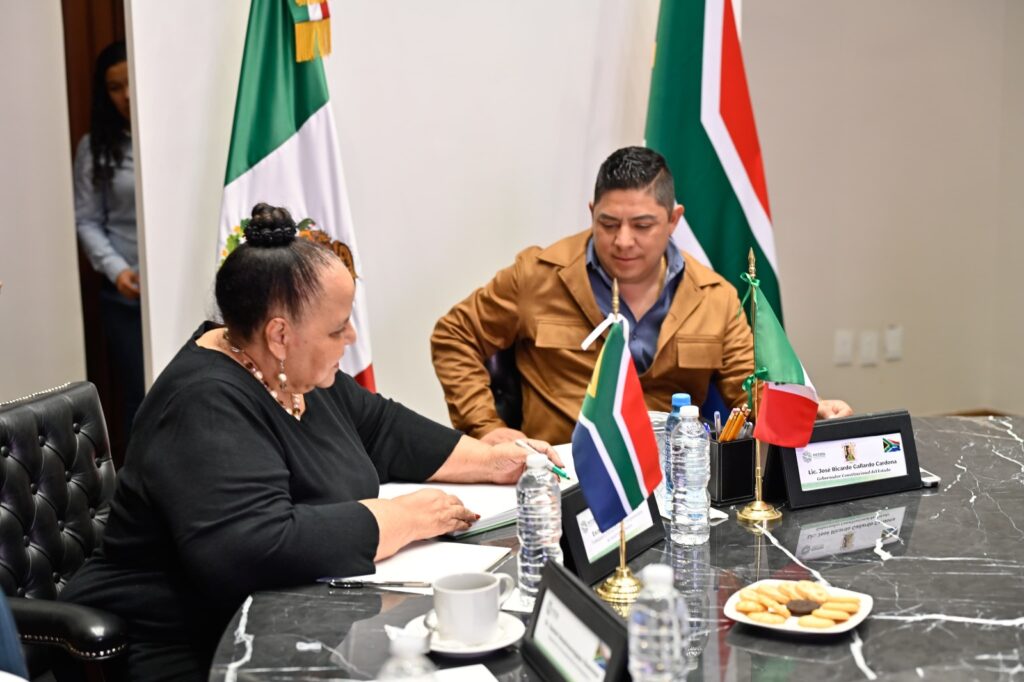 En continuidad al plan de promoción económica y de fortalecimiento de los lazos de cooperación en materia de educación, turismo y cultura a nivel internacional, el Gobernador de San Luis Potosí Ricardo Gallardo Cardona, se reunió este martes con la Embajadora Extraordinaria y plenipotenciaria de Sudáfrica en México, Beryl Rose Sisulu.