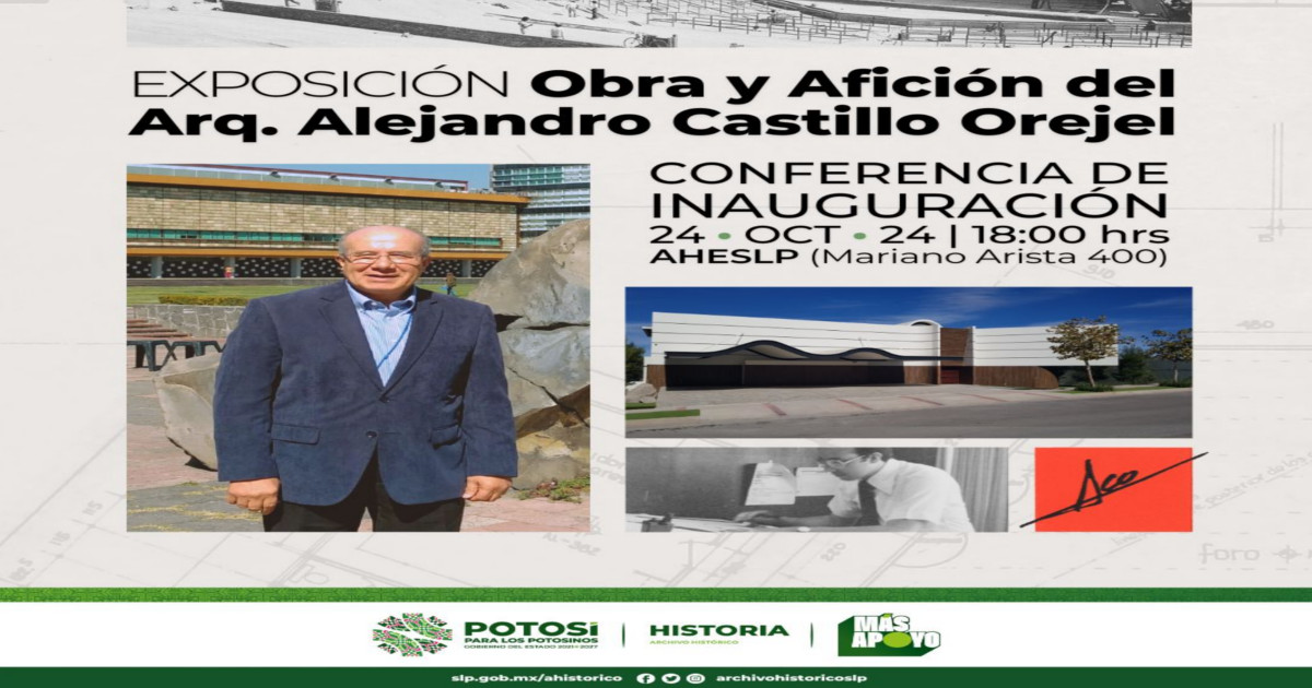 El Archivo Histórico del Estado ofrecerá este 24 de octubre de 2024, a las 18:00 horas, la conferencia inaugural y exposición “Obra y Afición del arquitecto Alejandro Castillo Orejel”, un evento que dará oportunidad de descubrir la trayectoria de uno de los arquitectos más destacados que han moldeado el paisaje de San Luis Potosí.