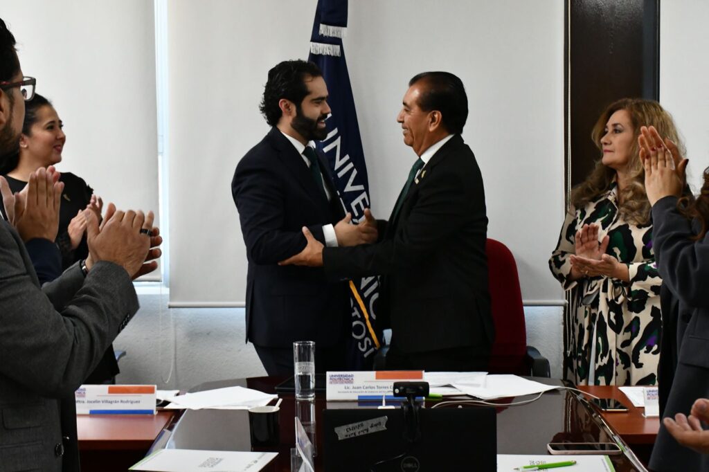 En su mensaje el titular de la SEGE, Juan Carlos Torres Cedillo, exhortó al nuevo rector a desempeñarse con lealtad y patriotismo, para garantizar una educación de excelencia y llevar más apoyo a las y los estudiantes de esta casa de estudios, cumpliendo con la demanda de crecimiento que ha logrado el Gobierno del Estado.