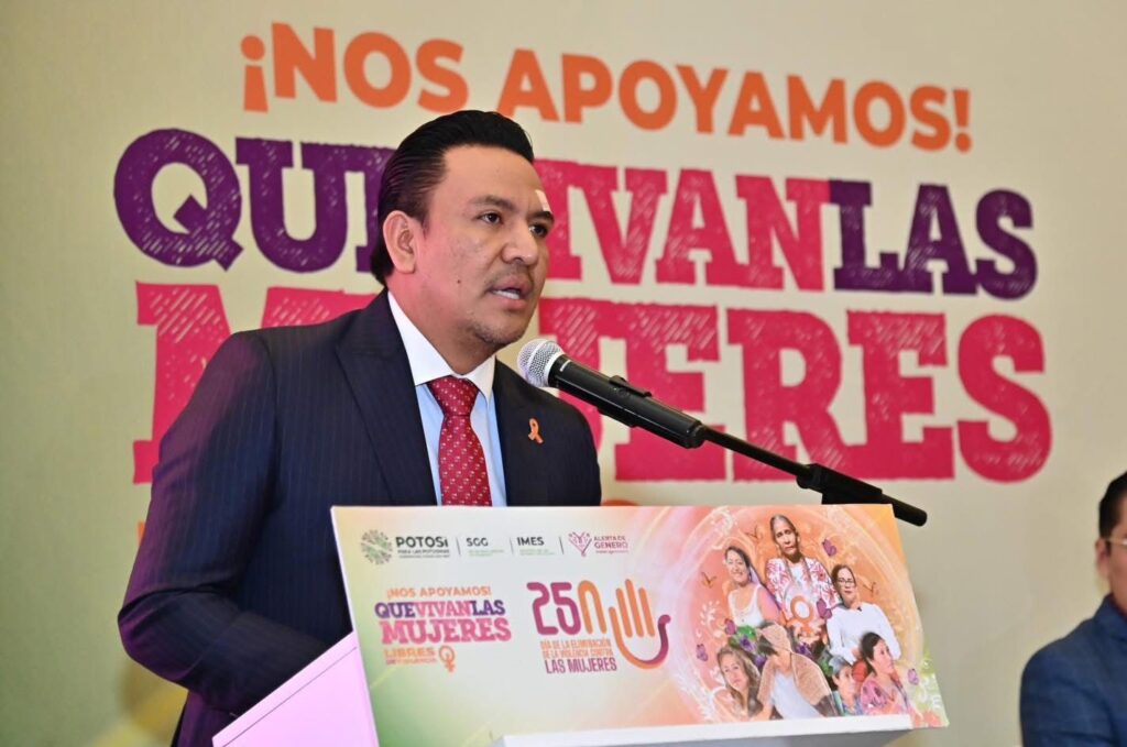 En representación del Gobernador Ricardo Gallardo Cardona, ante cientos de mujeres representantes de diferentes instituciones públicas y privadas, Torres Sánchez, expuso que fechas como el #25N, son determinantes para alzar la voz, escuchar y reflexionar y actuar con firmeza para erradicar todas las formas de violencia de género.