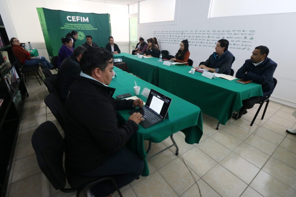 Para concretar más apoyo a las y los funcionarios públicos de los 59 ayuntamientos, la Coordinación Estatal para el Fortalecimiento Institucional de los Municipios (CEFIM), e instituciones de educación superior, acordaron el plan de estudios y materias a impartir dentro del programa estatal de certificación municipal, considerado punta de lanza a nivel nacional.
