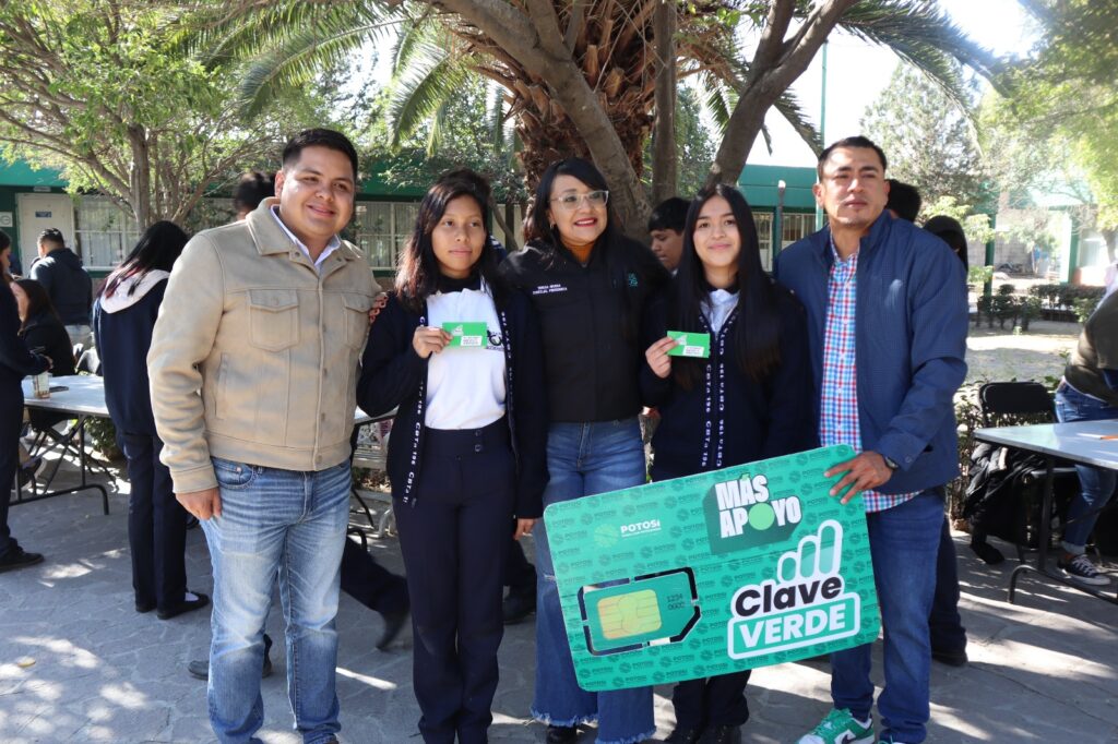 Para acercar a jóvenes de las cuatro regiones internet gratuito para que amplíen sus oportunidades de desarrollo estudiantil y profesional, el Instituto Potosino de la Juventud (Inpojuve), entregó chips del programa Clave Verde a estudiantes del Centro de Bachillerato Tecnológico Agropecuario (CBTA) 196 de Villa de Pozos, con lo que reciben más apoyo para sus familias al generar un ahorro en telefonía celular y conexión a internet. En seguimiento al trabajo de atención social del Gobernador de San Luis Potosí, Ricardo Gallardo Cardona, de garantizar el acceso de internet a las y los potosinos de las cuatro regiones, reducir la brecha digital y proporcionar a la juventud herramientas que faciliten su desarrollo académico, profesional y social, el Inpojuve continúa visitando los rincones del Estado para entregar chips de este importante programa. El titular de la dependencia, Jesús Adolfo Rubio Velázquez, destacó que Clave Verde ha cambiado la calidad de vida y apoyando la economía de las familias, para que aprovechen los beneficios que se brindan con los chips, como: internet y llamadas ilimitadas, con tecnología 4.5G y hasta 20 GB de conectividad, a favor de la equidad en el acceso a la información y a las oportunidades que brinda la tecnología.