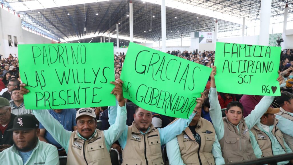 En las instalaciones de la Feria Nacional Potosina (Fenapo), en un ambiente de alegría y fiesta, cientos de taxistas y sus familias agradecieron al Gobernador Ricardo Gallardo por el reconocimiento e importancia que ha brindado al gremio, a su labor y a las condiciones en las que trabajan, luego de que la maldita herencia las y los tenía olvidados.