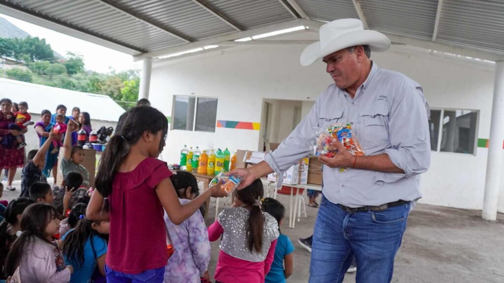 En compañía de las autoridades municipales de Santa Catarina, el funcionario estatal entregó dulces y regalos a cientos de niñas y niños de los poblados de San Pedro y La Encantada, quienes expresaron su gratitud por estos momentos de convivencia, en fechas especiales.