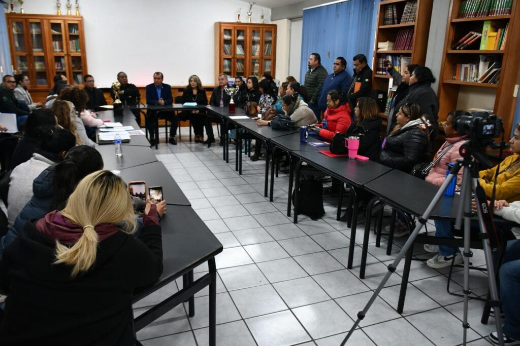 Como parte del compromiso de brindar más apoyo a la comunidad educativa y garantizar el acceso a la educación de niñas, niños y jóvenes, la Secretaría de Educación de Gobierno del Estado (SEGE) encabezó mesas de trabajo con un comité de madres y padres de familia de la secundaria Técnica 1 y de la primaria Tipo 21 de agosto, logrando mediante un diálogo abierto y respetuoso, acuerdos a favor de las y los estudiantes y de la educación.