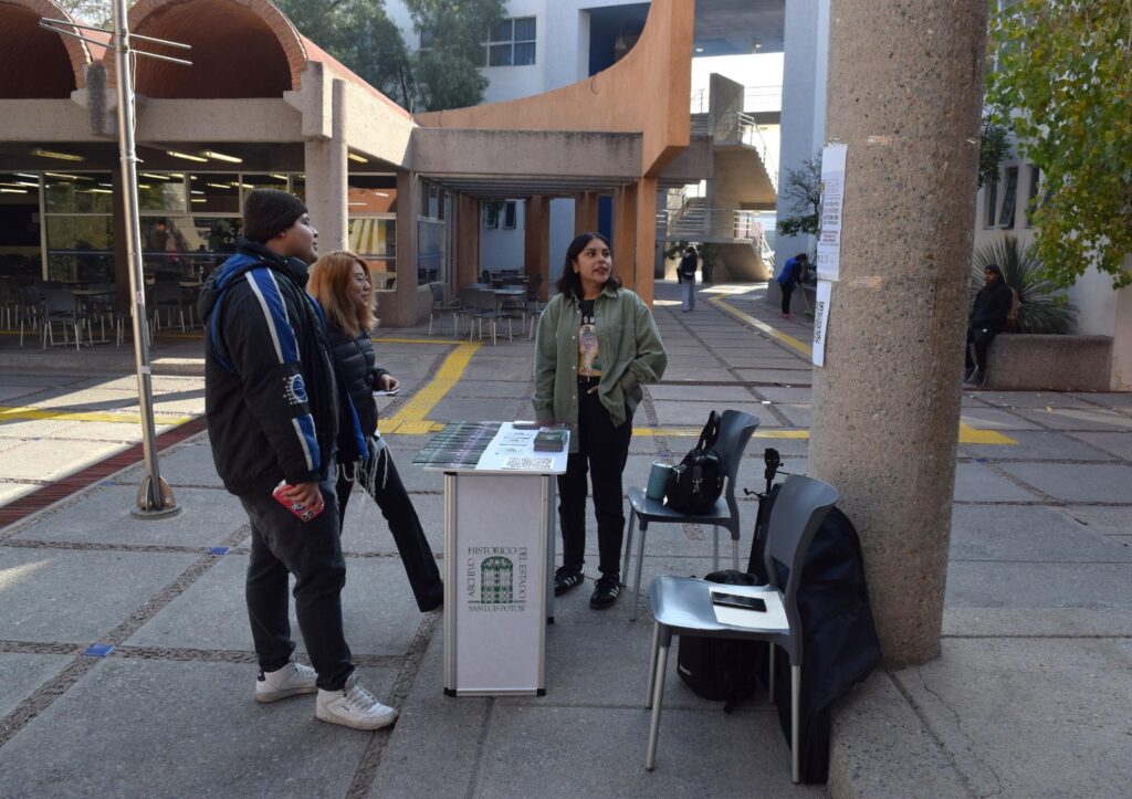 Para fortalecer el apoyo a la educación y la cultura en el Estado y promover mayor vinculación con la comunidad académica, personal del Archivo Histórico de San Luis Potosí (AHESLP) visitó la Facultad de Ciencias Sociales y Humanidades de la Universidad Autónoma de San Luis Potosí (UASLP), donde invitó a las y los jóvenes a conocer el acervo, acceder a documentos con más de trescientos años de antigüedad y ser parte de las actividades que lleva a cabo con regularidad.
