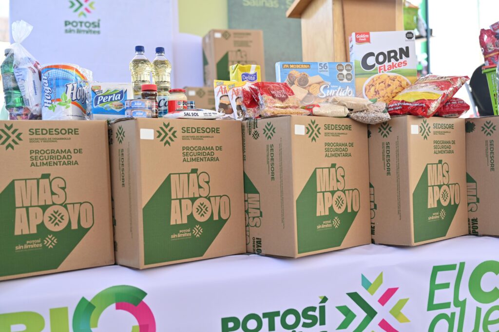 Ricardo Gallardo entregó el Programa de Seguridad Alimentaria, que amplió su tamaño con artículos de limpieza y productos de la canasta básica; además, puso al servicio de las familias las nuevas calles De La Paz y Nassau, con 9 mil 198 metros cuadrados de concreto hidráulico, 152 tomas hidrosanitarias e iluminación moderna, lo que mejora la vida de las y los habitantes.