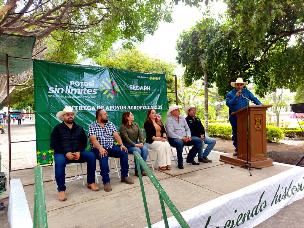 Siguiendo la instrucción del Gobernador Ricardo Gallardo Cardona, para fortalecer la productividad y el desarrollo del campo potosino, la Secretaría de Desarrollo Agropecuario y Recursos Hidráulicos (Sedarh), entregó equipamiento sin límites a productores agrícolas y ganaderos del municipio de Cerritos, en la zona Media, con una inversión cercana a los tres millones de pesos.